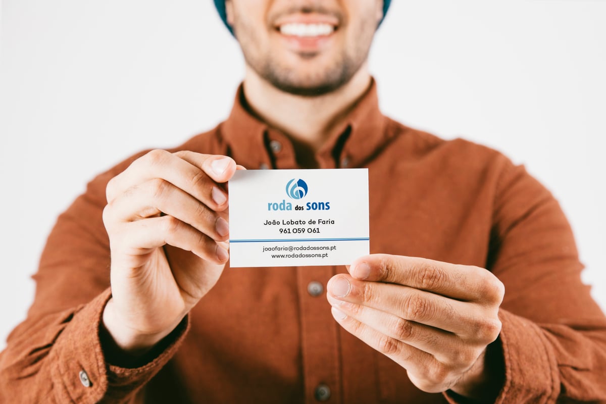 Nossos cartões de visita são impressos em cartolina de 350g, com o tamanho padrão de 85x55mm e opção de orientação horizontal ou vertical. Caso precise de outro tamanho ou formato, entre em contato para um orçamento personalizado.