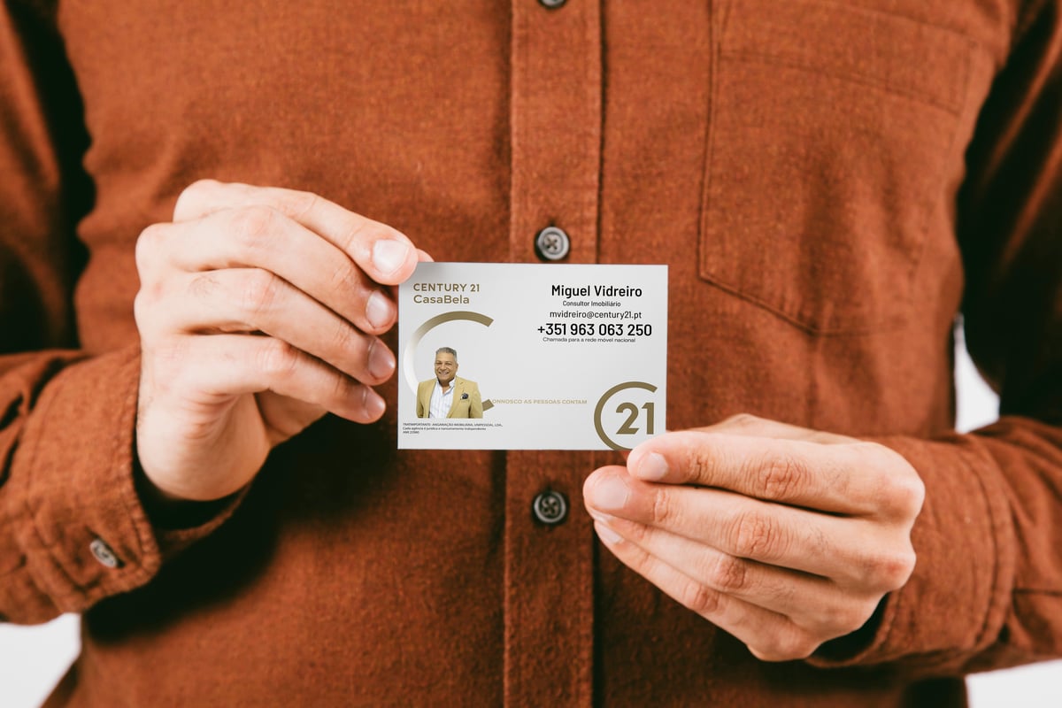 Nossos cartões de visita são impressos em cartolina de 350g, com o tamanho padrão de 85x55mm e opção de orientação horizontal ou vertical. Caso precise de outro tamanho ou formato, entre em contato para um orçamento personalizado.